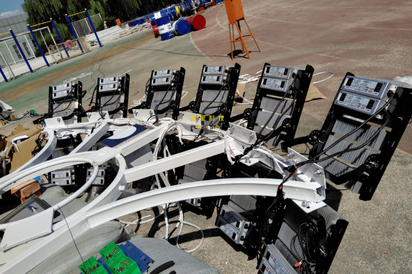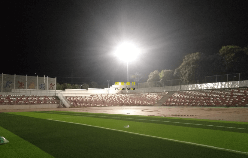 工程,操場四角各安裝一套18米升降高桿燈,每套燈配置12盞300W大功率LED(飛利浦芯片,明緯電源),夜間體育場整體平均亮度為26-35Lux,夜晚如白晝,調試效果深受校方認可。